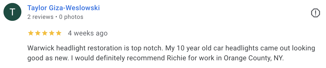 Top Rated Mobile Headlight Restoration Company in Warwick, NY