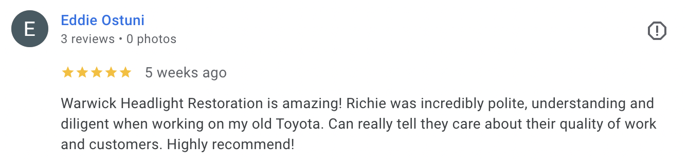 Hi, I’m Richard, the owner and hands behind Warwick Headlight Restoration. I started this company because I saw how something as simple as clear headlights can make a big difference in road safety.
